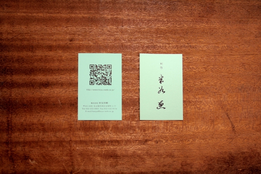 表には手書きの筆文字を、裏にはQRコード等の情報を