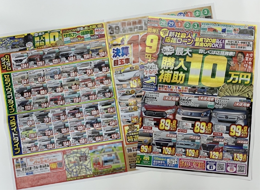 チラシ印刷 新聞折込向けB3チラシ印刷 B3サイズ(364×515mm)の二つ折りB4サイズ仕上がりです。 新聞折込によく使われるコート53kgと73kg の2種類の厚みをご用意いたしました。 お気軽にお問い合わせ下さい。 PREV LIST NEXT ≫ 業界別印刷セット≫ パンフレット印刷≫ リーフレット印刷≫ チラシ印刷≫ ポスター印刷 ≫ DMハガキ印刷≫ 名刺印刷≫ カード印刷≫ 封筒印刷≫ 伝票印刷 ≫ シール/ステッカー印刷≫ のぼり≫ 横断幕・懸垂幕≫ 活版印刷≫ オンデマンド印刷 ≫ ノベルティ≫ オプション加工≫ カレンダー印刷≫ 看板出力≫ 病院・医療広告